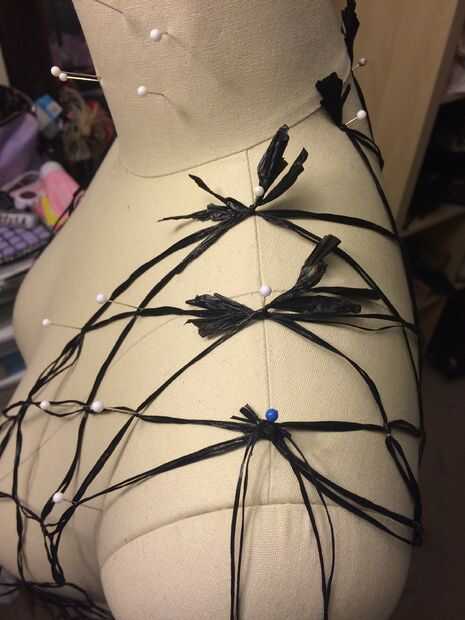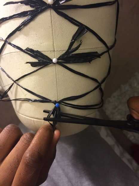 2. Utilice la mitad de un filamento de grupo para unir la parte delantera y la espalda
