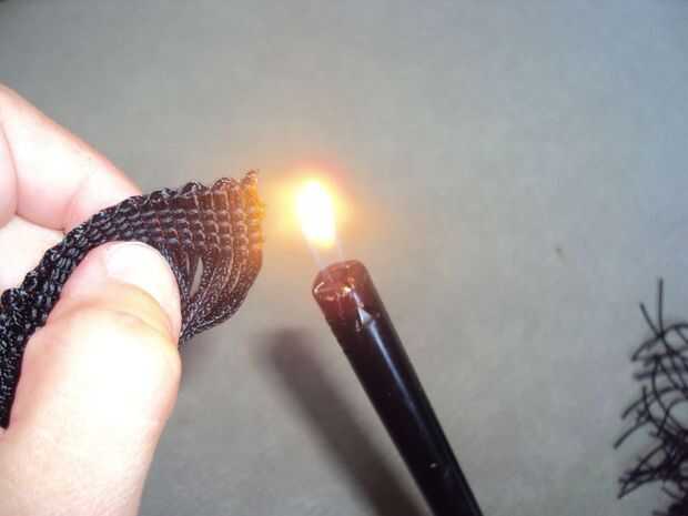 Utilizar cualquier fuente de llama cuidadosamente: fósforo, velas, encendedor etc. para el acabado de los bordes así que wont frey.
