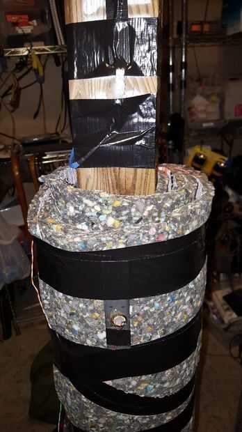 Puse los sensores de "cuerpo" sobre unas pocas vueltas de acolchado de la alfombra, pero tuve bastante grueso, rígido acolchado para la cabeza, decidí grabar simplemente el "jefe" sensor directamente en el post de 4 x 4. Después de que los sensores estaban en lugar, terminar envolviendo la alfombra acolchado alrededor de la sección de cuerpo y había añadido un objetivo coleando portátil rígido para el área de la cabeza. Se ha añadido un exceso del bolso de duffle del ejército a la zona del cuerpo y una bolsa de entrega alimentos acolchado para la cabeza. Elegí estas cosas porque ellos estaban mintiendo sólo alrededor de la casa.
