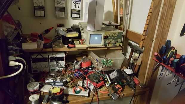 Una vez que todo estaba en su lugar, ya era hora de una cubierta externa resistente, y que significó la cinta del conducto. Dos rollos completos, envueltos alrededor y alrededor, me dieron un exterior resistente. Después de la cinta en su lugar, yo enganché los sensores hasta el osciloscopio, sólo para asegurarse de que tenía una señal utilizable de los elementos piezo. Todo lo veía muy bien!