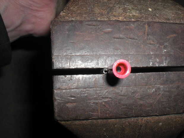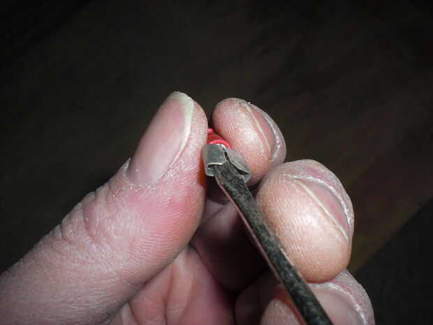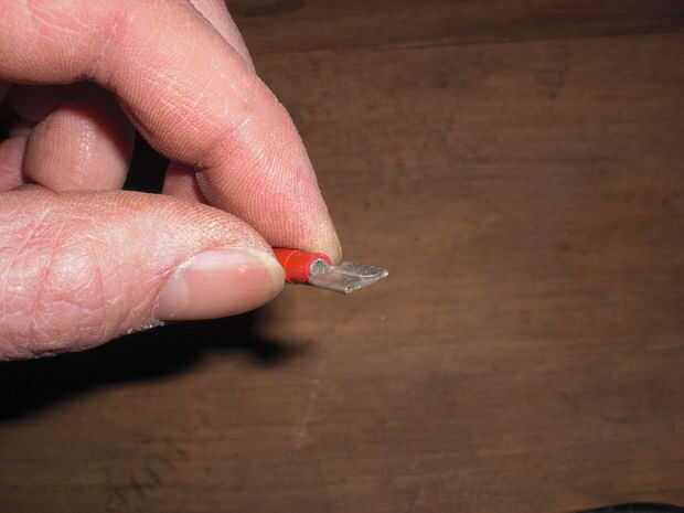 Aplanó los 2 terminales para la sierra con un tornillo de banco. Sólo poner el conector en el tornillo y apriete hasta que se aplana.