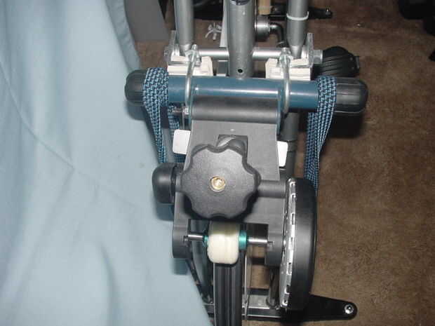 5. prueba de conducción. Al principio, hubo mucha vibración. Una cadencia de 30 era el máximo antes de la vibración comenzó realmente. El volante y, en menor grado, el rodillo de rueda de skate necesarios para "redondear".