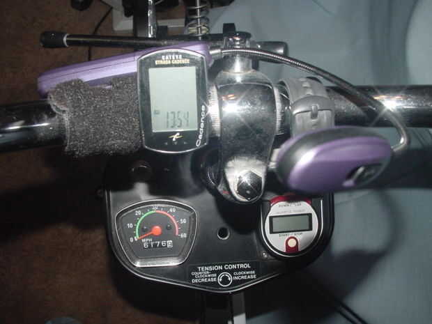 El velocímetro mecánico temporizador digital en mi volante de Panasonic EX-1000 1980 ejercicio y trabajo todavía bici bien. La moto es impulsión directa, sin costear, por lo que la cadencia es una función de millas por hora. Fácil de entender y construir un gráfico. Sin embargo, quería cadencia, el tiempo y millas por hora en una pantalla digital, fácil y agradable. Quería «moderno».