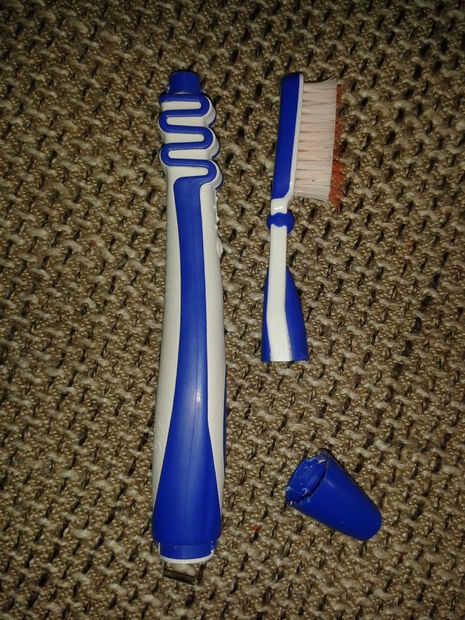 En este punto, el plan era simplemente cortar un segmento del nuevo cepillo de dientes y un agujero en él que encajaría en el trozo donde se une la cabeza anterior. Murphy arruinado...