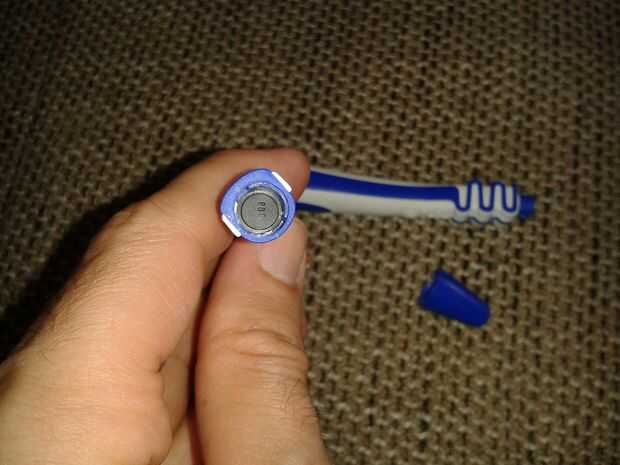 Nuevo examen, vi una costura similar entre el cabezal del cepillo y el cuello flexible del cepillo de dientes. Se siguió el mismo procedimiento: después de la lo ondulación a lateral un poco crack abrir la costura pegada, la cabeza torcida bastante fácilmente, dejándome con el cuerpo principal (y el motor del vibrador ahora expuesto) y el vago en forma de cono cabeza cepillo.