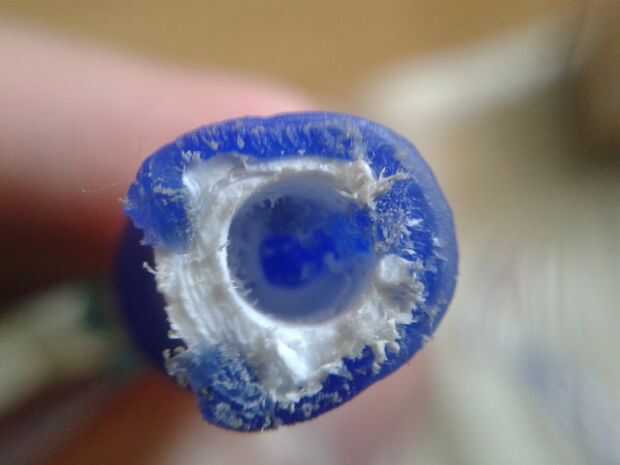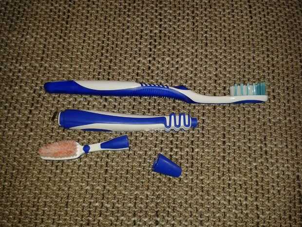 Si nos fijamos cuidadosamente en la última foto en este paso, usted notará que el plástico blanco, duro se interrumpe en el lado derecho de la parte azul, parecido a la goma. Esta debilidad pasa a ser exactamente fueron causará el cepillo a caerse cuando se cepilla con incluso menos bits de vigor. Así, en lugar de haber resucitado un cepillo de dientes, ahora tenía dos pacientes "muertos" en mis manos... ¿Qué hacer?