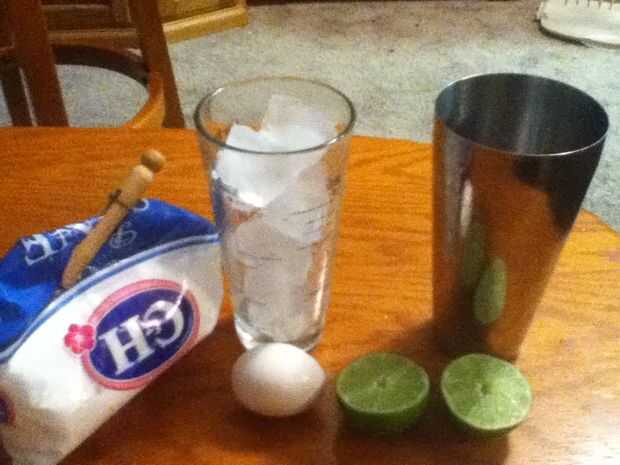 primer pack un vaso con hielo picado y apartar para relajarse. Luego en un absenta de cosechadora de coctelera, jugo de limón, clara de huevo y azúcar, agite esto hasta que cremoso y suave. Esto cuele en tu vaso llenada de hielo y top con club soda, decore con limón.