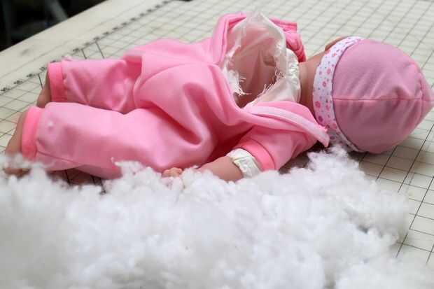 Abrir la parte posterior de la muñeca y hacer una pequeña incisión en la espalda, luego quite el bateo dentro.