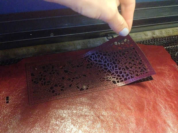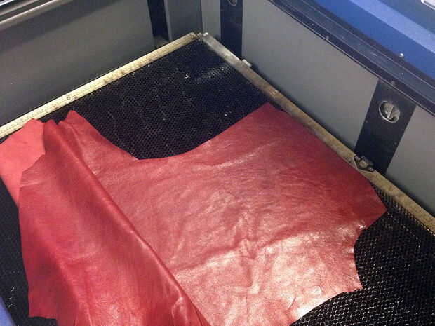 Tiempo para los lasers! Soy muy afortunada al tener acceso a un cortador del laser. Si no tienes acceso a uno en su área a través de espacios de hacker o talleres compartidos, Ponoko ofrece varios colores de verduras curten cuero, que será mucho más grueso que lo que estoy utilizando aquí pero también más durable. También puede omitir el láser corte en conjunto y el juego con herramientas tradicionales y técnicas de trabajo para la ornamentación de cuero. Revisa nuestro canal de cuero para las ideas.
