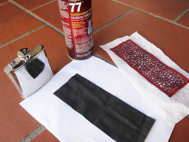 Ahora que sabía que tenía dos piezas que encajan, les pegué hacia abajo usando Super 77. Mientras que no proporciona un asimiento fuerte estupenda, la capacidad de colocar y aplicar uniformemente hizo un buen pegamento para esta aplicación. La parte posterior de la capa inicial no necesita tener una costura perfecta, pero no se superponen. Llegarlo más cerca posible.