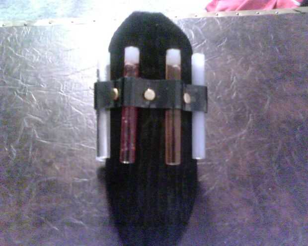 -Swatch tela de pasillo de la manía (http://shop.hobbylobby.com/products/embossed-felt-rectangle-alligator-397687/), el marrón de la foto es no lo usaba, pero un ejemplo. Por supuesto, puede utilizar cuero, pero no quiero gastar mucho y la muestra fue sólo de 50 centavos de dólar.