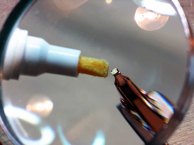 Monte microclip + LED en las manos- y flujo se aplica a los cojines en el LED.