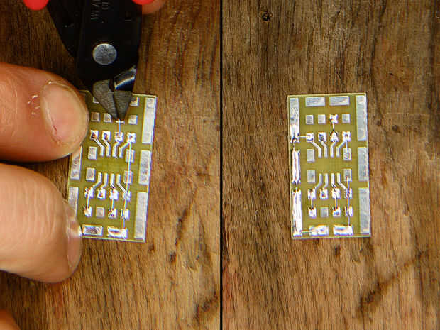 Puente de alambre de soldadura a través de las almohadillas como se ilustra-