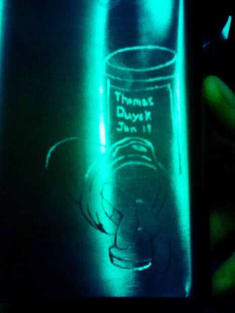 Cuando el grabado se hace la cinta deben eliminarse, es más fácil raspar con la uña del dedo y luego limpiar los residuos con un trapo y líquido para encendedores.