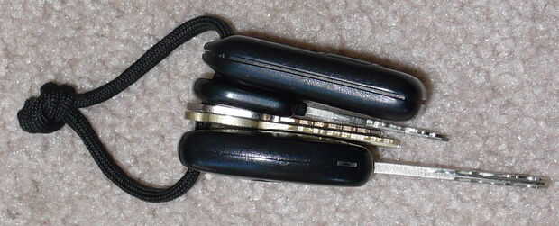 Nudo para facilitar su eliminación.  Suplente de plástico y metal para reducción de ruido (sé que hay 2 llaves de metal al lado del otro).