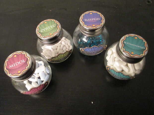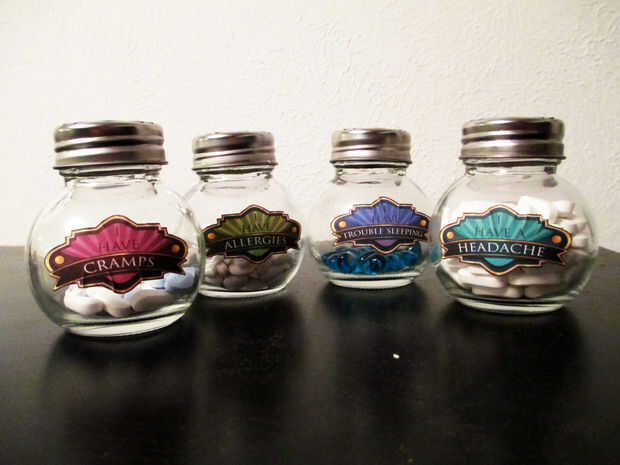 Como una víctima de largo plazo de dolores de cabeza, dolores y catarro, tiendo a recoger un montón de pastillas de OTC. Quería hacer las botellas bonitas que me ayude a cortar en la compra de muchos duplicados de un tipo de asesino de dolor, hacer evidente para mí ver al quedarse sin algo y hacer más fácil para mi novio para hacerme las medicinas derecha del gabinete por lo que me aflige. Ahora todo lo que tengo para decirle es "Tengo un dolor de cabeza", y sin más preguntas, él puede asir la botella que dice "Tengo un dolor de cabeza".