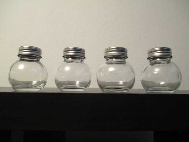 Encontré mis frascos de vidrio en Hobby Lobby por aproximadamente $1.25 cada y pensamiento eran el look perfecto que iba para el, pero también incluí algunos pasos sobre cómo utilizar tarritos si tienes algunos ahí.
