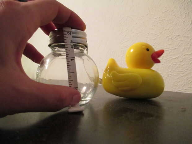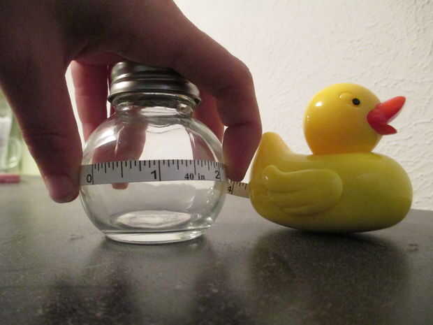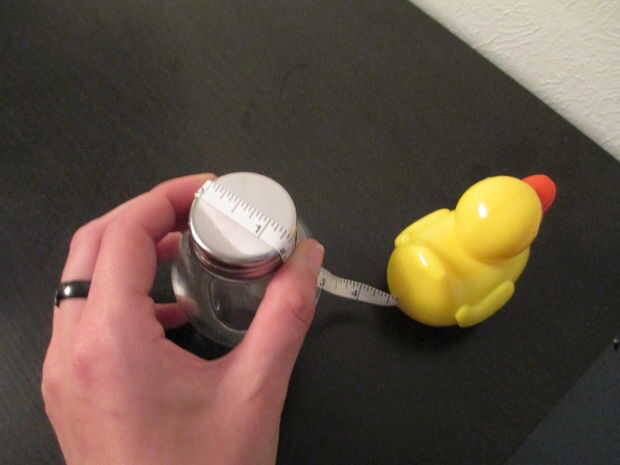 2. Mida sus frascos con su cinta de medir (yo usé a mi fiel pato cinta!). Ya que hice una etiqueta para el frente de la jarra y la tapa, tuve que saber medidas para ambos.