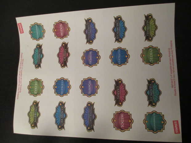 2. imprimir las etiquetas. Doblado la plantilla así que imprimiría dos copias de cada etiqueta, en caso de en mal estado (que no lo hice!).
