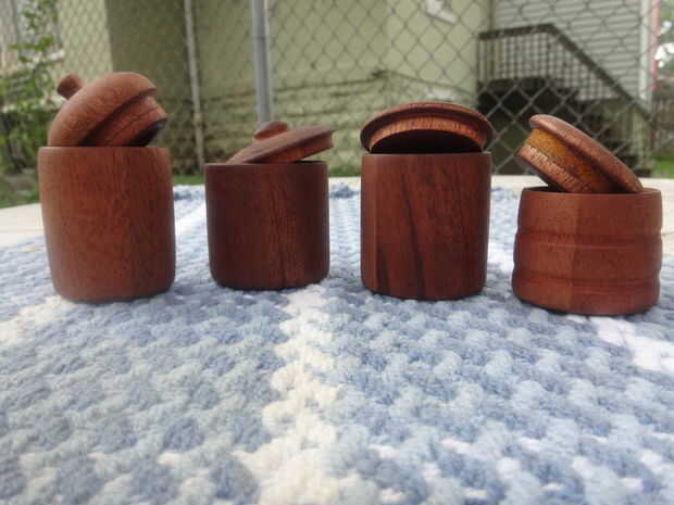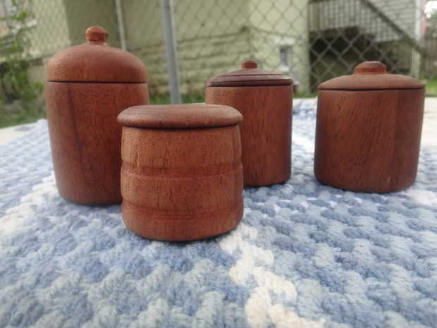 He utilizado brocas Forstner para ahuecar los contenedores mientras estaban todavía en el torno.