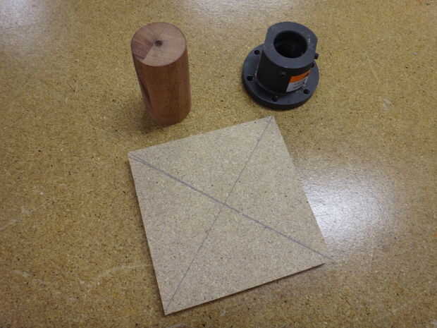 3) corte cuadrados de desechos de centros de madera, marcados