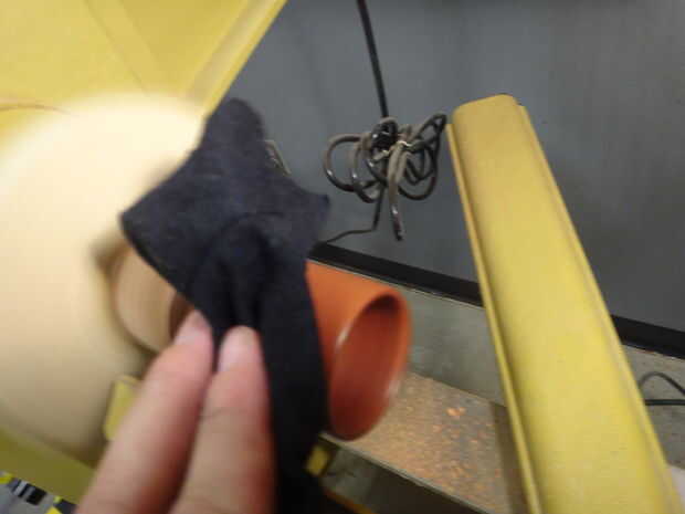 1) enarenado el tarro dentro y por fuera, pasando de papel de grano arena 100 a 400. 2) vaselina aplicado con una vieja camisa manga. 3) lijar con papel de grano arena 400 otra vez. 4) aplica aceite mineral.