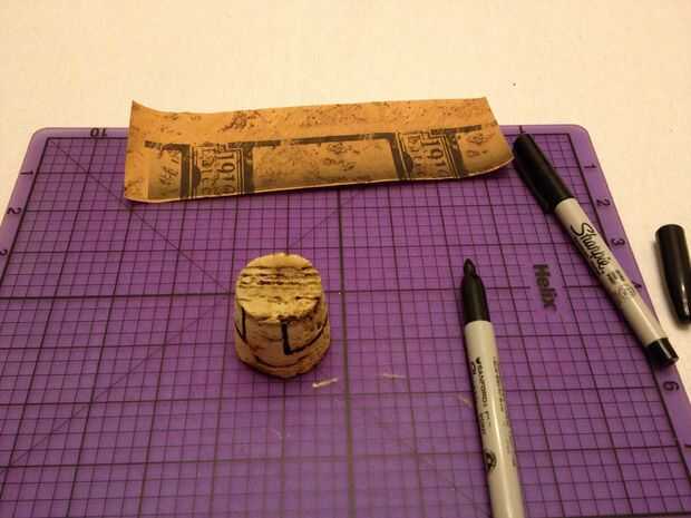 Así, la parte más difícil de hacer este apoyo viene a una mano firme y algunos Sharpies. He aislado la etiqueta corcho para su referencia.