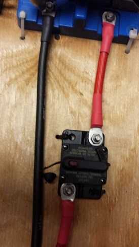 El interruptor requiere cable de calibre 4 o 6. Utilizar encrespaduras circular pasar los cables desde el tablero PD a interruptor y Andersons grandes para la batería.