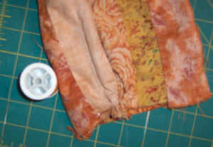 (opcional) Cortar un círculo pequeño de tela de desecho y pegamento caliente o mano coser sobre el centro de la clausura que acaba de hacer. (Este ayuda a mantener el arroz o la arena caiga hacia fuera).