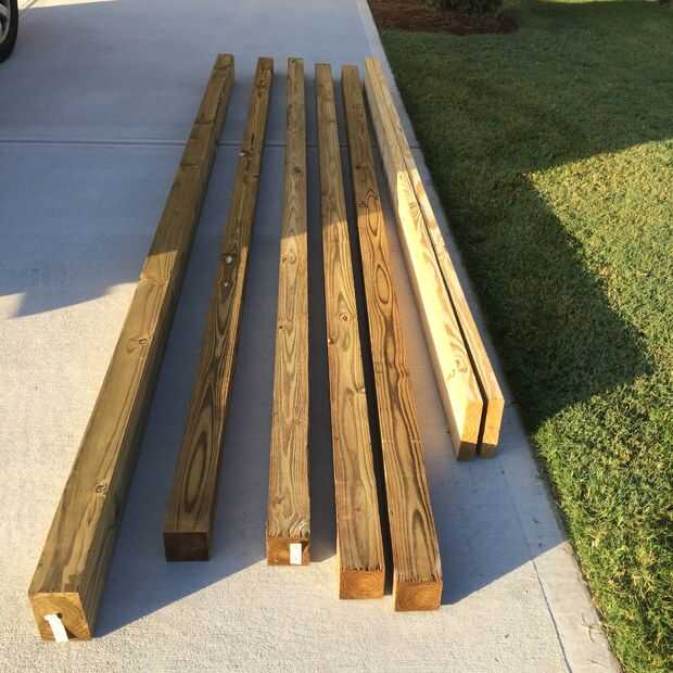 Pino tratada a presión. Comprar de su favorito mejoramiento hogar tienda o almacén de madera. Toma las piezas haciendo que usted puede encontrar. Comprar antes de tiempo si es posible dejar seco (madera de construcción suele ser muy húmedo e inflamado en la tienda).