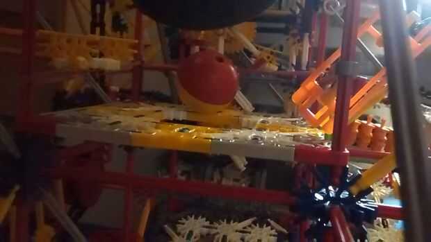 Aquí es una máquina de la bola de k'nex que fue construida por un niño de 7 años!