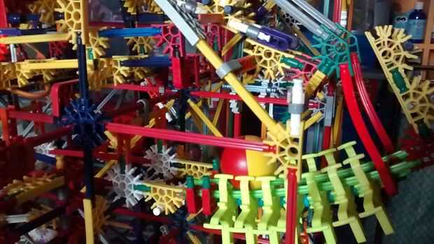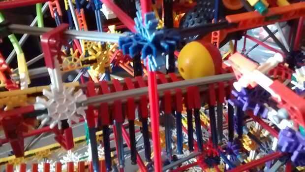 Aquí es una máquina de la bola de k'nex que fue construida por un niño de 7 años!
