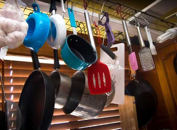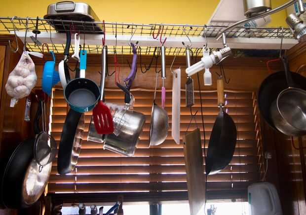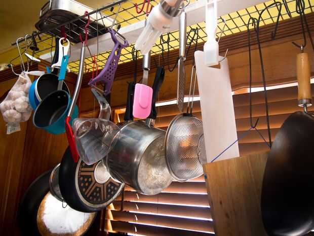 Tener un lugar para colgar ollas y sartenes y recién lavada utilidades sobre el lavabo ha sido una adición útil a mi cocina.