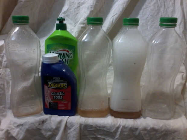La ADVERTENCIA: la soda cáustica es especialmente malo para los ojos y no dejar esta mezcla en botellas donde gente que no sea usted, que no sabe o no entiende lo que está sucediendo, puede entrar en ella.