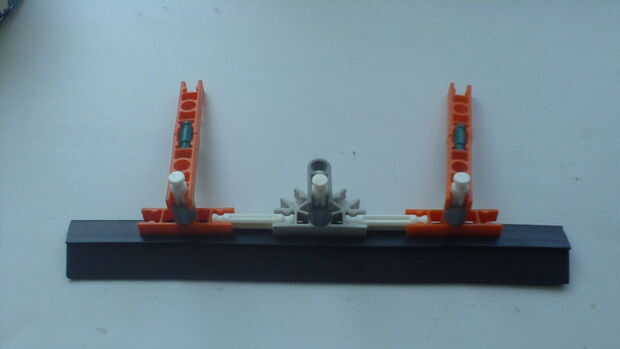 Las barras de K'nex blanco deben ser puestas a través de los agujeros de la goma justo lo suficiente de que el agujero se ajusta alrededor de la parte hundida de la varilla.