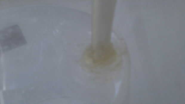 Finalmente caliente pegue alrededor del agujero en el cubo para que cuando pones agua en el balde, goteará fuera del agujero y a través del tubo.