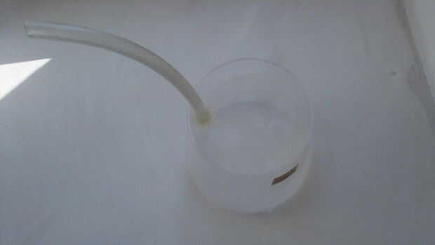 Taladre un pequeño agujero en el fondo de una bañera de plástico pequeña (tan pequeño como usted posiblemente puede hacerlo) / cubo de la. El cubo que utiliza dice que tiene acerca de un litro. La primera vez que hice el agujero, era un poco a grande y agua goteó hacia fuera muy rápidamente, inundando la cocina. Así que asegúrese de que el agujero es muy pequeño.