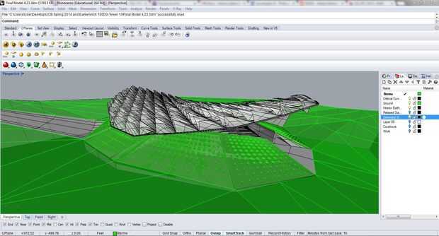 La estructura fue generada utilizando Grasshopper y flexionadas y había aumentada usando el plugin de canguro a saltamontes.