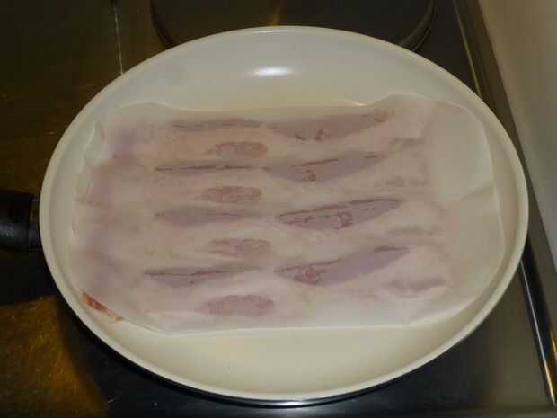 Freír tocino (y huevos) usando papel pergamino (3 / 9 paso)