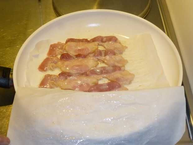 Freír tocino (y huevos) usando papel pergamino (4 / 9 paso)