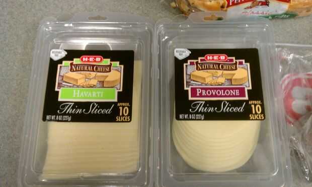 Harvarti y queso provolone - queso Tengo el agradable queso presliced, Llamadme Ismael... O sea perezoso. Una rebanada de cada uno para cada sándwich