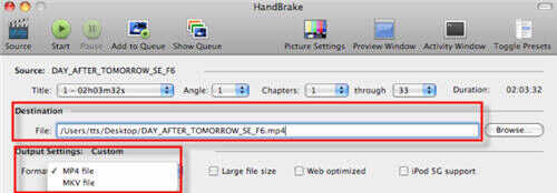 Paso4. Cargar película en DVD y definir el destino y elija un formato de salida: MP4 archivo o archivo MKV