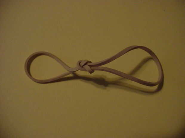 Lazo las dos bandas de goma juntos así que hay un solo nudo en ella. Puede omitir este paso totalmente Si utilizas una goma más largo, pero es bonito tener el nudo pequeño para agarrar al abrir y cerrar la cartera.