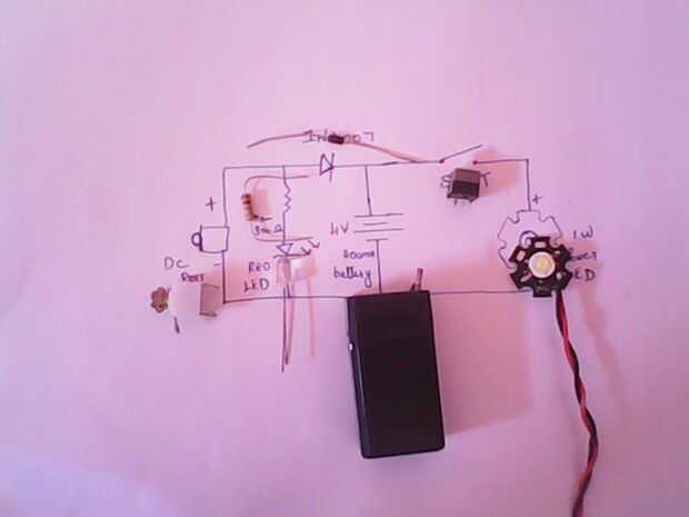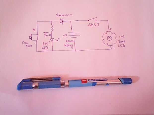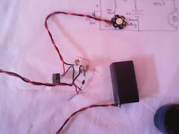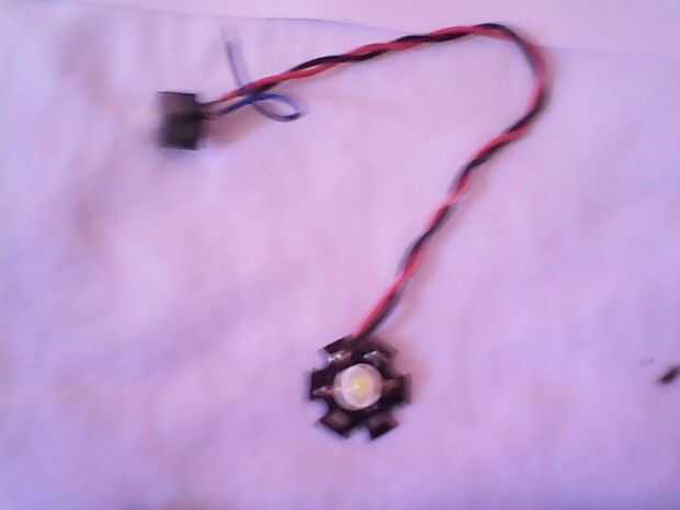2. Coloque el 1W LED encendido iluminando parte de la luz de la antorcha utilizando la pistola encoladora.