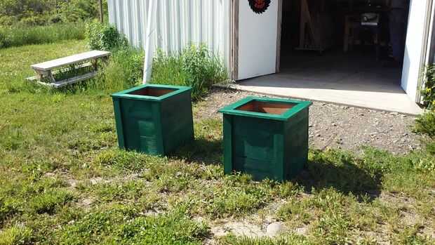Las cajas de flor del jardín se muestra aquí son 20 "x 20". La madera que adquirimos era 7 "x 2" lengüeta y ranura. Cada sección de la caja fue hecha por el primer edificio de las cajas más pequeñas, a continuación, combinándolas para llegar a los los 21" altura. Se unieron luego las tres cajas adyacentes uno al otro, con tablas de tipo de tira de abeto de 1 x 3. Otra vez, todo sujeto con tornillos permitir el desmontaje más tarde si es necesario. Entonces utilizamos tableros de 1 x 4 poner un carril en cada caja. Aunque los cuadros de mirar profundos, en realidad, tienen un falso fondo a 5.5" por debajo de la baranda superior, para ahorrar en la suciedad de la cara. Este fondo tiene 5 agujeros para permitir el drenaje.