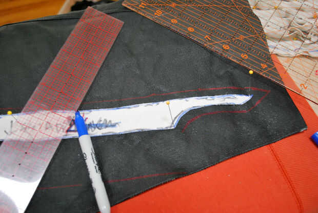 Esta vez alrededor tomé fotografías más detalladas por lo que es un poco más fácil a seguir de cómo pasé de las piezas del patrón del spandex a las piezas de cuero acabado. (En la primera Instructable Kali nos dio los pasos.) Si eres clara en cómo he añadido los márgenes, omita este paso. De lo contrario, continuar.