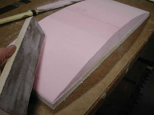 Uso del bloque, arena en el molde cuidando de no de la arena debajo de la línea de plantilla en cualquiera de los lados del molde. El papel de la arena es muy agresivo así que tenga cuidado de no dejarse llevar. Arena en el molde a lo largo como esto puede causar un agujero en la espuma que no puede ser reparada.