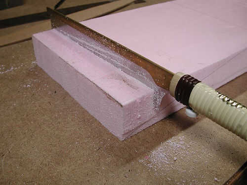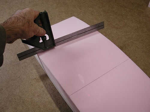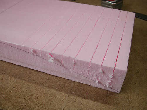 Ahora como mi sierra no es suficientemente ancha como para cortar el perfil hacia fuera, voy a utilizar un backsaw. Realizar una serie de cortes alrededor de 1 pulgada aparte en toda la espuma. Reducir casi donde comienza la línea de plantilla. Para ello en ambos extremos de la espuma.