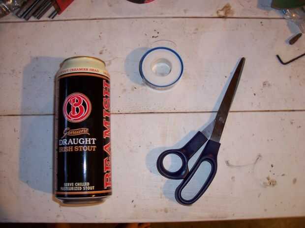 En primer lugar, necesita algunas piezas básicas. En un mínimo, puede 1aluminum, cinta y tijeras. Puede utilizarse cualquier tipo de cinta, incluyendo cintas adhesivas. Terminé con 2 latas de cerveza más grandes (Beamish 14.9 oz latas).