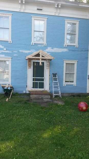 Heres en su dosificación es un elemento clave en el diseño. La anchura y altura del techo, en relación con la anchura y la altura de la puerta. Corte el revestimiento de nuevo todo el camino alrededor de la puerta. El primer paso era añadir dos tablas a cada lado de la puerta. 2 x 10. tamaño de la moldura se determinó después de que el techo fue puesto encendido.